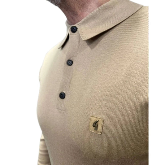 Francesco Long-Sleeved Knitted Polo - Sandstone