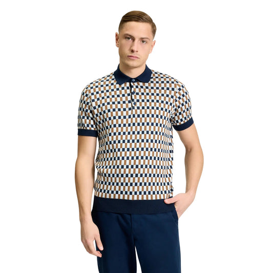 Short Sleeve All Over Jacquard Polo - Dark Navy