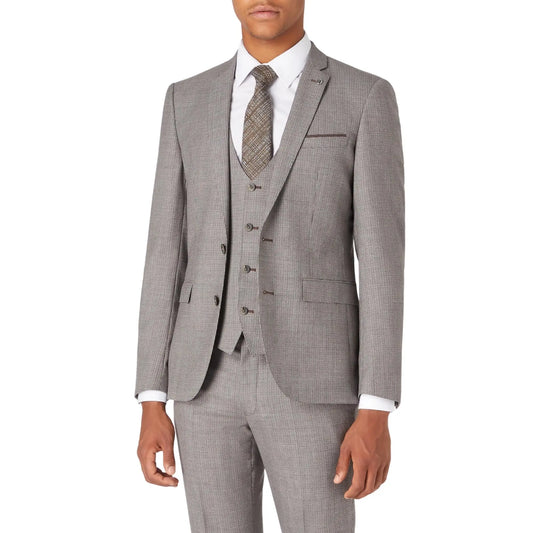 Lazio Houndstooth Suit Waistcoat - Beige / Brown