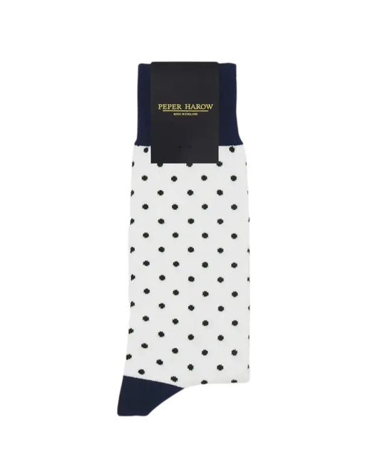 Polka Dot Cotton Socks - White / Navy