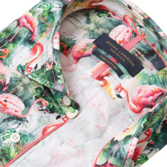 Flamingo Print Long Sleeve Shirt - Green/Pink