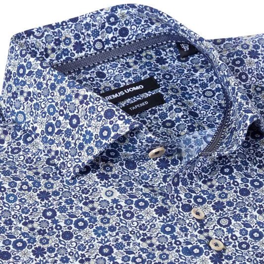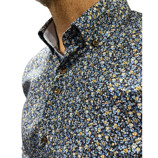 Abstract Floral Long Sleeve Shirt - Blue/Multi