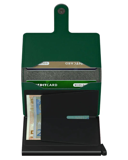 The compact mechanism offers extreme functionality with its pop up card motion, whilst the aluminium frame protects your cards from bending and fraudulent contactless communication.